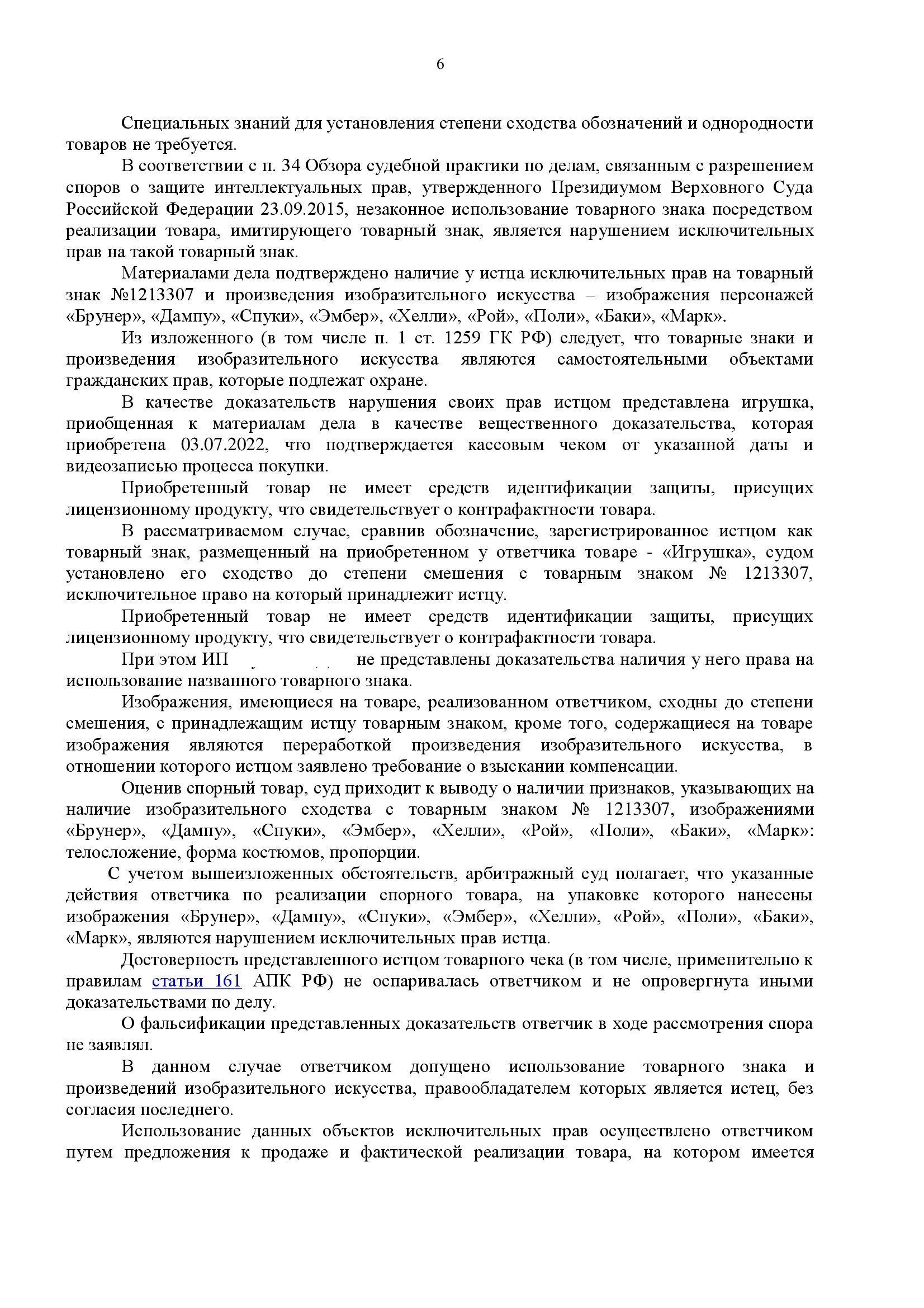 Истец (ROI VISUAL Co., Ltd., Республика Корея) обратился в суд с иском к ИП о взыскании 100 000 руб. компенсации за нарушение исключительных прав на товарный знак и 9 произведений изобразительного искусства — изображения персонажей анимационного сериала «Робокар Поли» (Эммер, Хэлли, Поли, Рой, Марк, Баки, Скул Би, Брунер, Дампу). Основание — продажа в торговой точке ответчика контрафактной игрушки, содержащей указанные обозначения. Ответчик представил отзыв с возражениями и заявил о снижении компенсации. Дело рассмотрено в общем исковом порядке.
