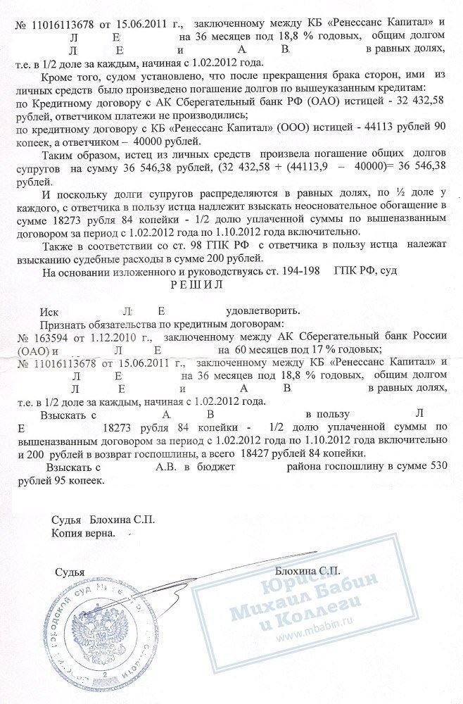 Разделили кредиты между разведенными супругами