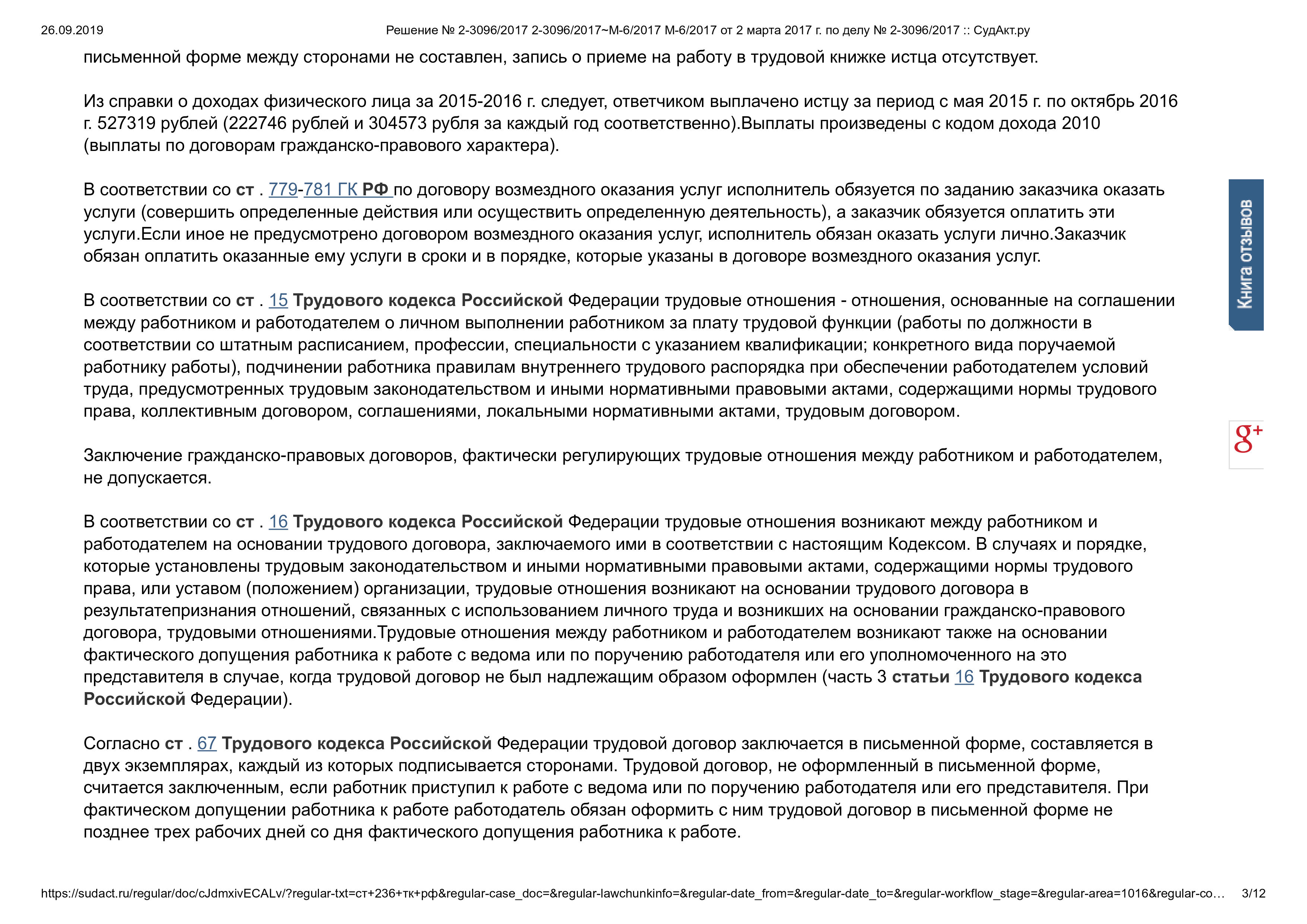 Суд решил обязать ответчика внести в трудовую книжку запись о приеме на работу на должность курьера. Взыскать с ответчика в пользу истца задолженность по заработной плате в размере 79097 рублей 85 коп. (с последующим вычетом необходимых налогов и сборов), денежную компенсацию за задержку выплаты заработной платы в размере 10948 рублей 13 коп., компенсацию морального вреда в размере 3000 рублей.