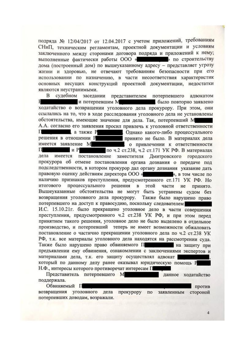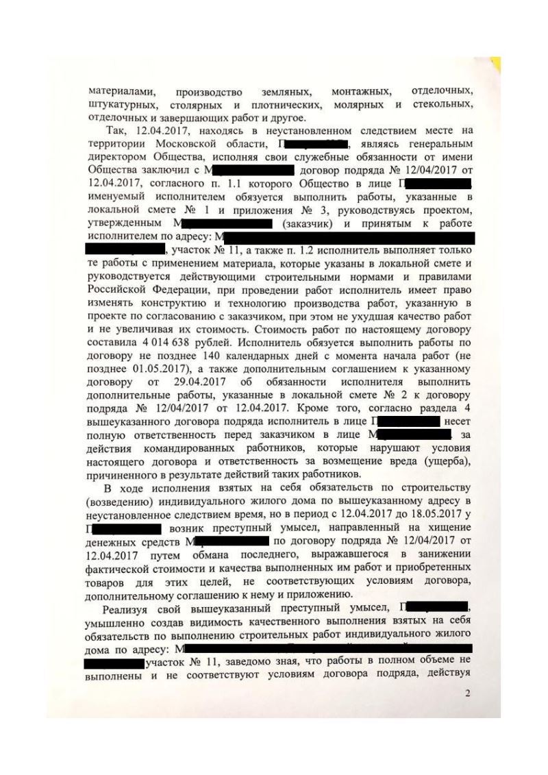 Клиент обратился с просьбой об оказании юридической помощи по уголовному делу, которое было возбуждено по факту совершения мошенничества при строительстве жилого дома.