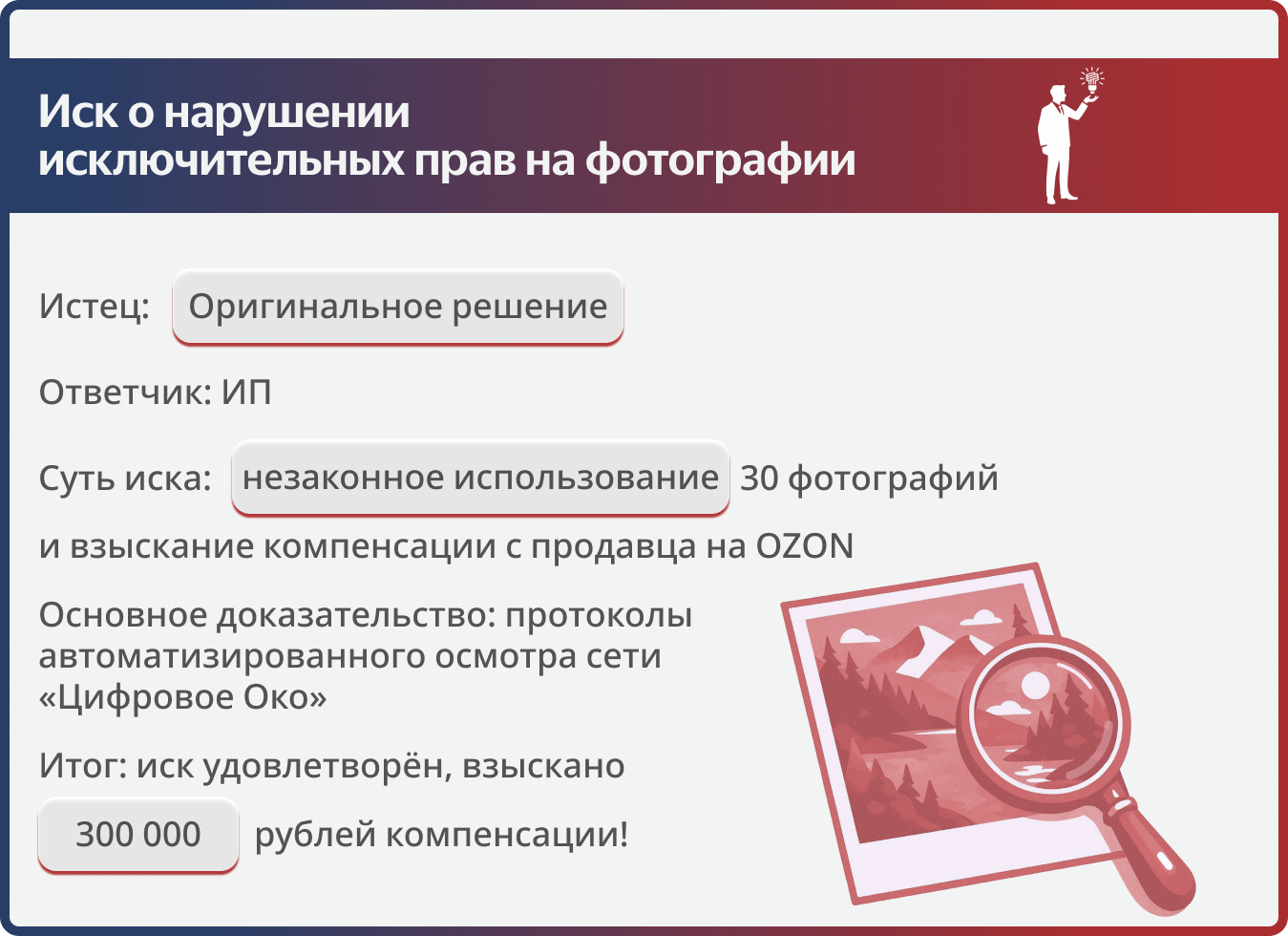 Урок для недобросовестных продавцов: Суд наказал за кражу контента на Ozon — взыскано 300 000 рублей.