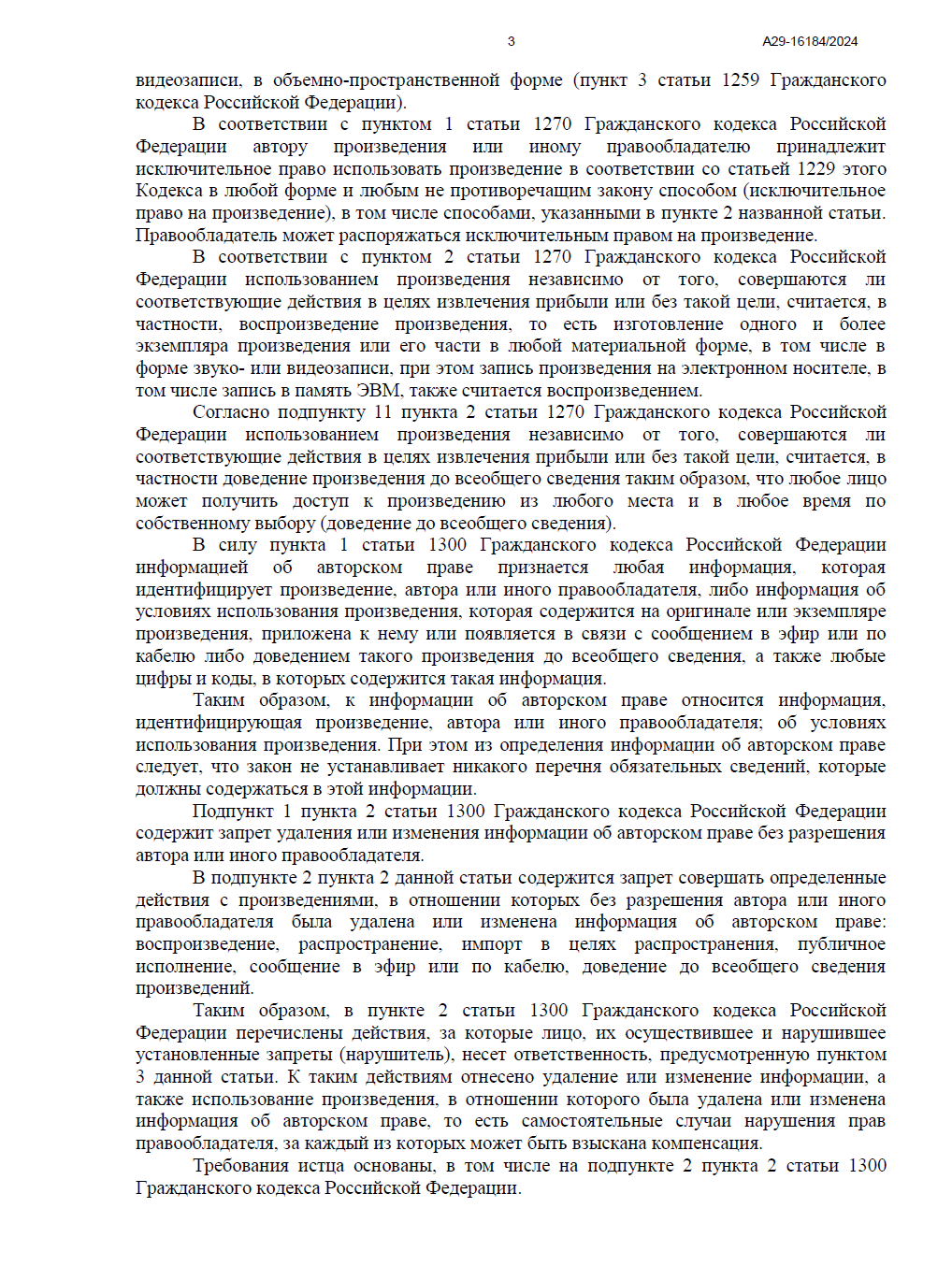 • Согласно закону, срок исковой давности начинает течь не с момента совершения нарушения, а с момента, когда правообладатель узнал или должен был узнать о нем. Мы предоставили суду доказательства, что о нарушении стало известно только 30 марта 2024 года в процессе целевого мониторинга. Суд полностью принял нашу позицию, отклонив довод Ответчика.