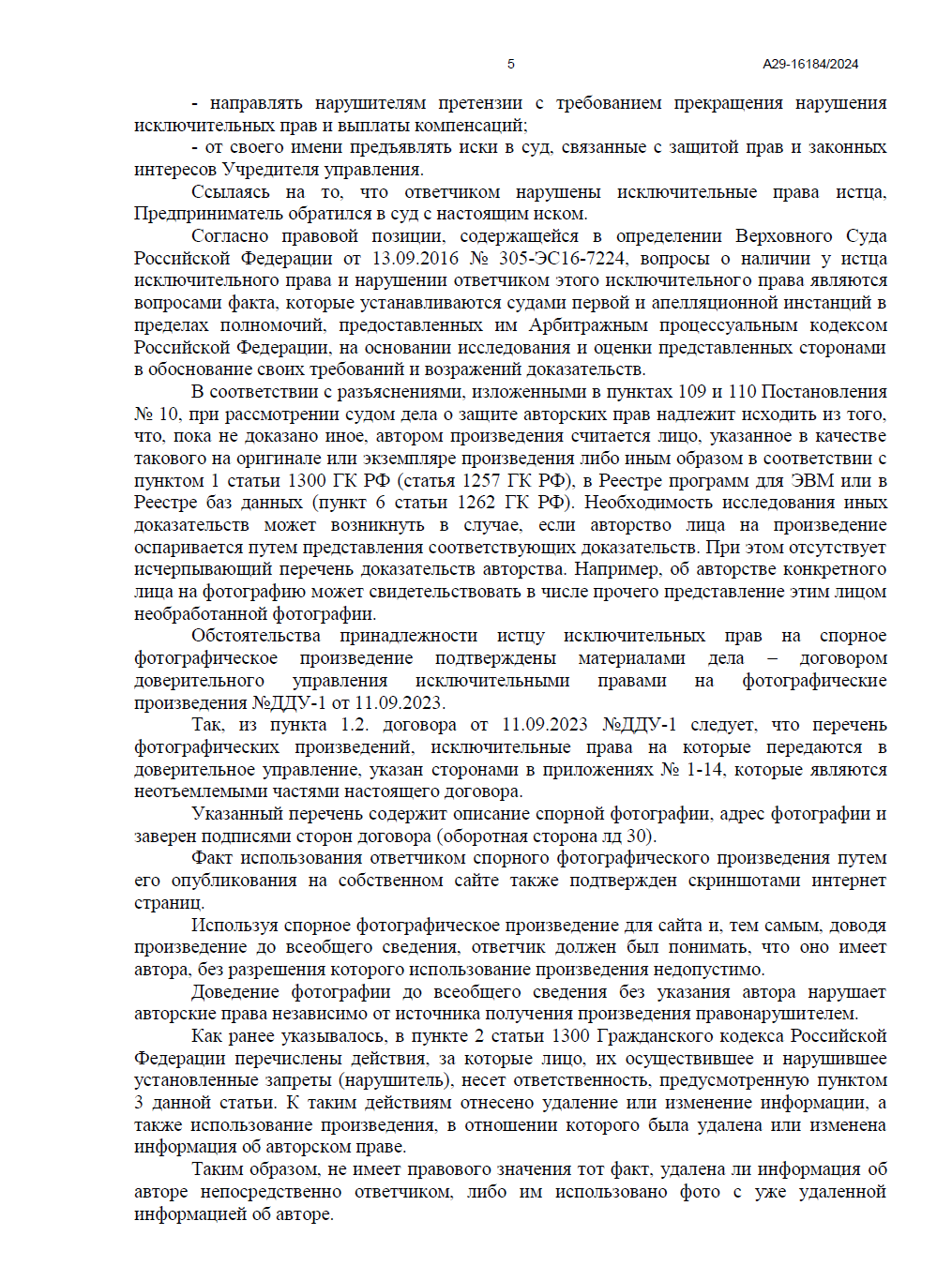 Арбитражный суд Республики Коми полностью удовлетворил наши требования. Суд признал, что использование фотографии без указания имени автора (Осипова А.В.) не может быть признано свободным цитированием, а срок исковой давности не пропущен.