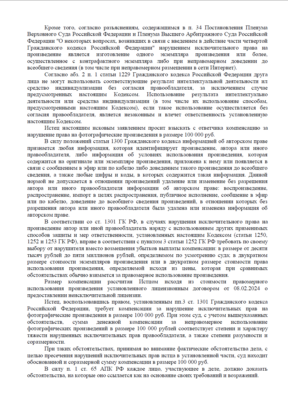 Сослались на ст. 1229, 1252, 1270 и 1301 ГК РФ: были допущены два нарушения — воспроизведение фото и доведение его до всеобщего сведения. Ключевые аргументы, которые легли в основу победы: