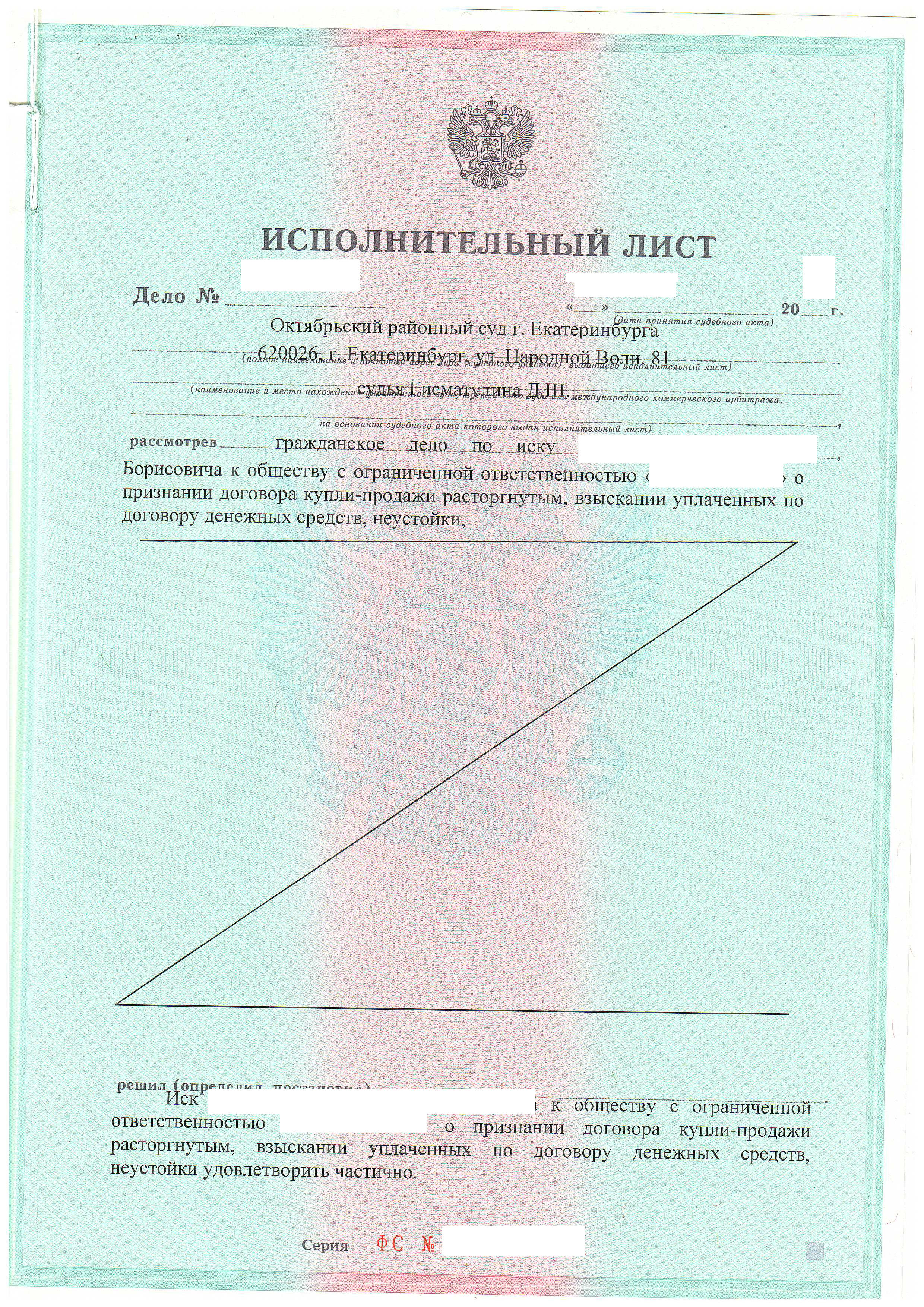 • Удовлетворены требования клиента на сумму